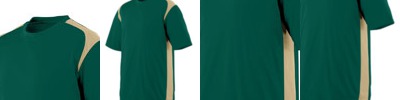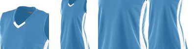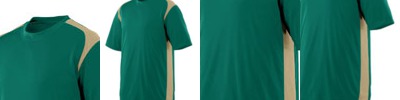 - 3.4 oz., 100% poly tricot mesh; 100% poly dazzle fabric yoke and sleeves