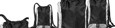 420 honeycomb rip-stop nylon fabric; Black Super DUROcord® drawstring for extra comfort and durability; Front pocket with media port for additional storage and convenience; Polyurethane coating;