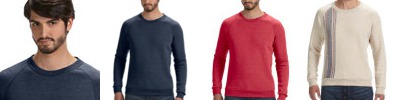 5.5 oz., 100% ringspun cotton jersey; Ribbed crew neck (97% ringspun cotton, 3% spandex); Taped shoulder-to-shoulder; Back locker patch; Double-needle hem bottom; Bleed-resistant ink is recommended for printing; Ribbed sleeve cuffs (97% ringspun cotton, 3% spandex);