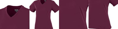 - moisture-wicking; minimal shrinkage; slightly contoured for a flattering fit