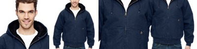 - Elastic cuffs; Open bottom; Dropped tail; Water-resistant; Machine-washable