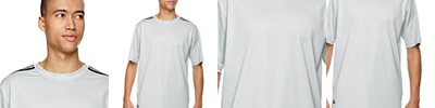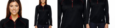 moisture wicking, antimicrobial and UV protection performance; 100% polyester snag protection tricot, 4 oz./yd2/135 gsm; 100% polyester birdseye mesh, 3.8 oz./yd2/128 gsm; Matching flat knit collar; Self fabric piping at shoulder yoke seams;