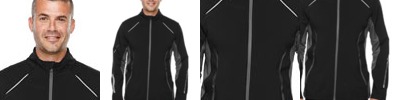 7.5 oz/yd2 / 250 gsm, 3-Layer 96% polyester, 4% spandex bonded to 100% polyester jersey with inner membrane; Polyester/spandex terry inserts; 8,000 mm waterproof rating; 800 g breathability rating; inside storm placket with chin guard; front reverse coil zipper with semi-autolock rubber pull tab; front reverse coil zippered laser cut pockets; left sleeve reverse coil zipper laser cut pocket ; reflective piping at front and back shoulder yoke; laser perforation at upper back for added breathability; reflective heat transfer decoration at lower sleeves; audioport access through inside left pocket; adjustable shockcord at hem;