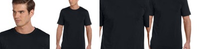 4.5 oz., 100% polyester; Moisture management jersey; Ribbed collar; Taped shoulder to shoulder with EasyTear™ label; Double-needle hemmed sleeves and bottom;