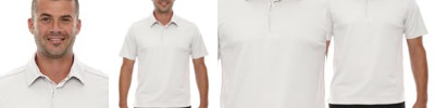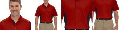 100% polyester snag protection plus tricot, 5 oz./yd2/170 gsm; Moisture wicking, antimicrobial and UV protection performance; matching flat knit collar; contrast colour neck tape; contrast inner placket; contrast side inserts; contrast piping at front and back shoulders and sleeves; contrast two-needle decorative stitching;