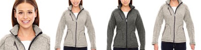 100% polyester sweater knit fleece, 9.4 oz./yd2/320 gsm; inside storm placket with fleece chin guard; center front reverse coil zipper with embossed metal pull; brushed tricot-lined chest pocket ; contrast coverstitch detailing;
