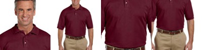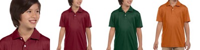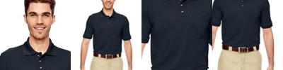 3.5 oz., 100% polyester double mesh; Moisture-wicking; Double-needle stitched sleeves and bottom hem; Back neck yoke; Ribbed collar; Two-button placket;