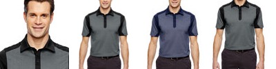 60% cotton/40% polyester performance birdseye, 5.3oz./yd2/180gsm ; moisture wicking and UV protection performanceá; self-fabric collar with stand; color-block shoulder panels with contrast piping; side slitsá; á;