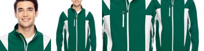 8.8 oz., 94% polyester, 6% spandex three-layer breathable soft shell; waterproof and windproof membrane 3,000 mm waterproof rating and 1,000 g breathability; wind- and water-resistent; center front contrast reverse coil zipper with semi-autolock rubber pull tab and chin guard; Sport Silver inserts at shoulders, sleeves and side panels ; front right-chest pocket for added storage while on the go; zippered front welt pockets; double-needle stitch open hem and cuffs;