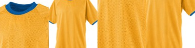 moisture wicking, antimicrobial and UV protection performance; 100% polyester snag protection tricot, 4 oz./yd2/135 gsm; 100% polyester birdseye mesh, 3.8 oz./yd2/128 gsm; Four-button placket; Matching flat knit collar; Self fabric piping at shoulder yoke seams;