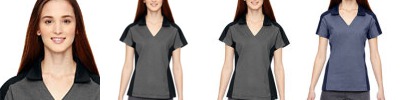100% yarn wicking polyester pique, 5.2 oz./yd2/175 gsm; Moisture wicking, antimicrobial and UV protection performance; self-fabric collar with collar stand; asymmetrical color-block styling;