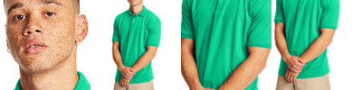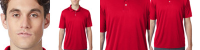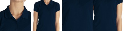 5 oz., 91% polyester, 9% spandex body; 4.7 oz., 91% polyester, 9% spandex pointelle mesh side panels ; moisture-wicking and anti-microbial; cationic dyes to ensure superior brightness and excellent color fastness; athletic fit; self-fabric collar; Sport Silver inner neck tape; sewn-in shoulder tape; three-button placket with dyed-to-match buttons;