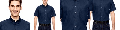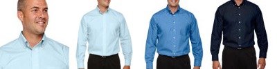 3.4 oz., 55% cotton, 45% polyester broadcloth; true non-iron performance straight from the dryer; stain release finish; fine yarn count shirting with pearlized buttons; patented pucker-free taped seams; specially fused collar, cuffs and placket; split back seam with bias cut back yoke; classic fit for professional appearance; rolled button-down collar; adjustable "Comfort Collar" gives up to an inch stretch at neck; left-chest pocket;